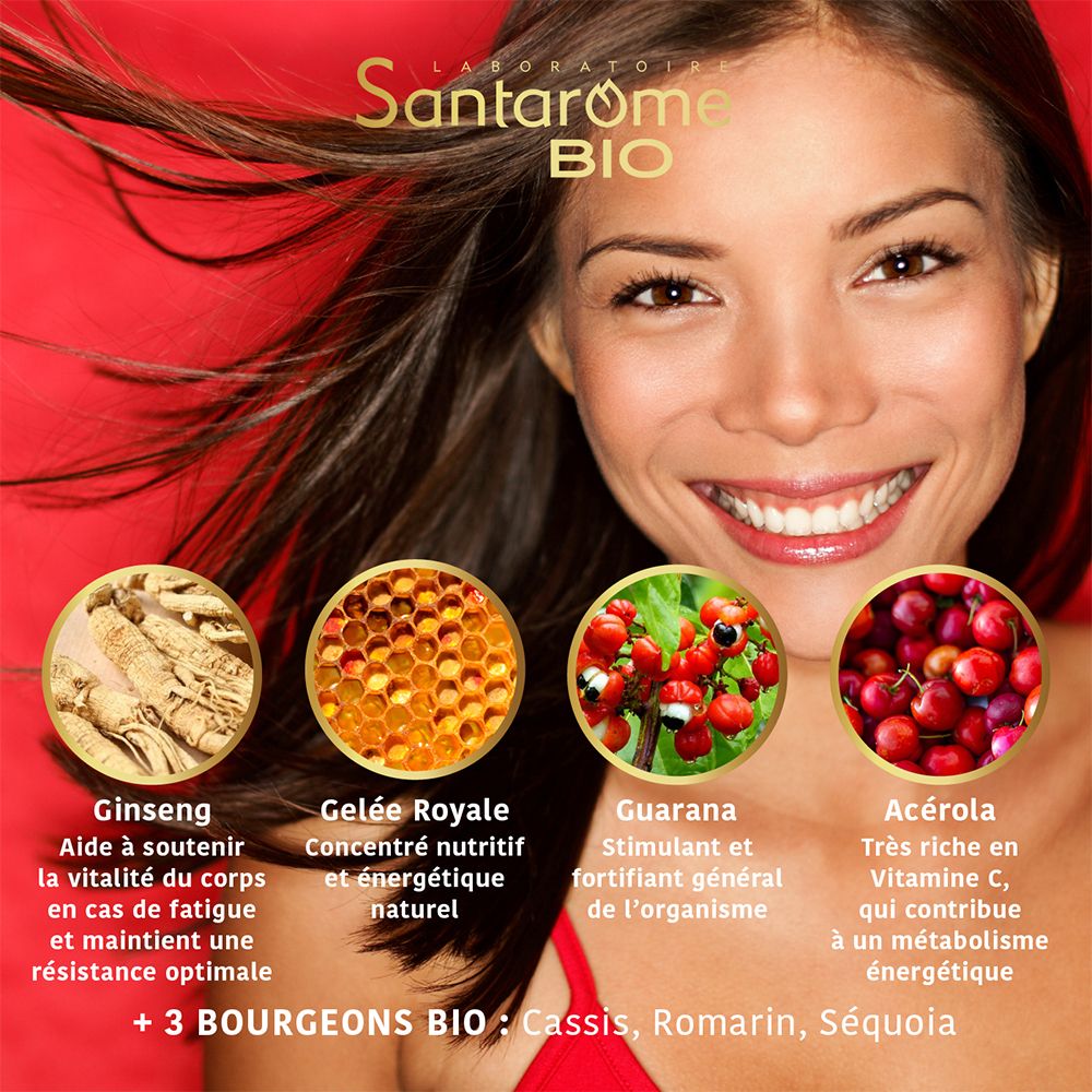 Booster dynamisant(1) BIO fortement dosé en 4 « SUPER INGRÉDIENTS » : Ginseng – Guarana – Gelée Royale - Acérola