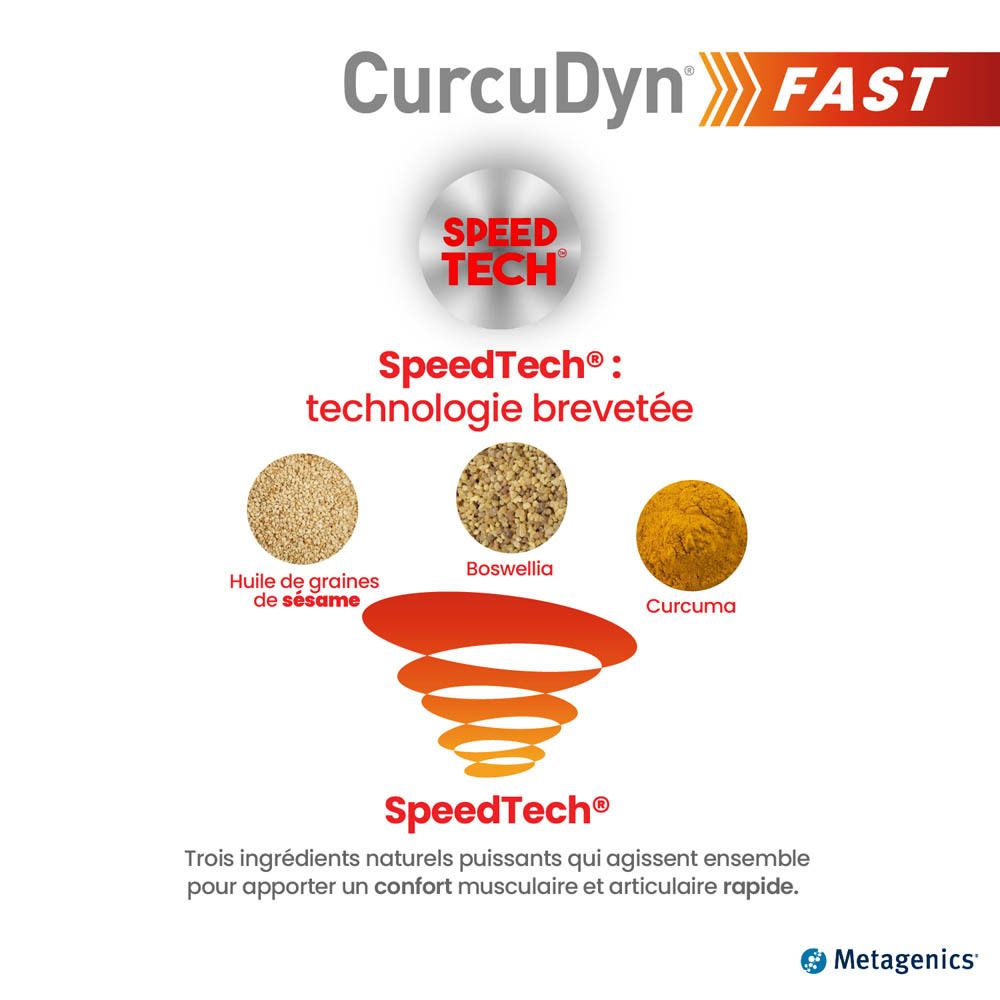 CurcuDyn Fast® contient du Curcuma longa, qui contribue à la souplesse des articulations et du Boswellia serrata, qui contribue au confort des articulations*.