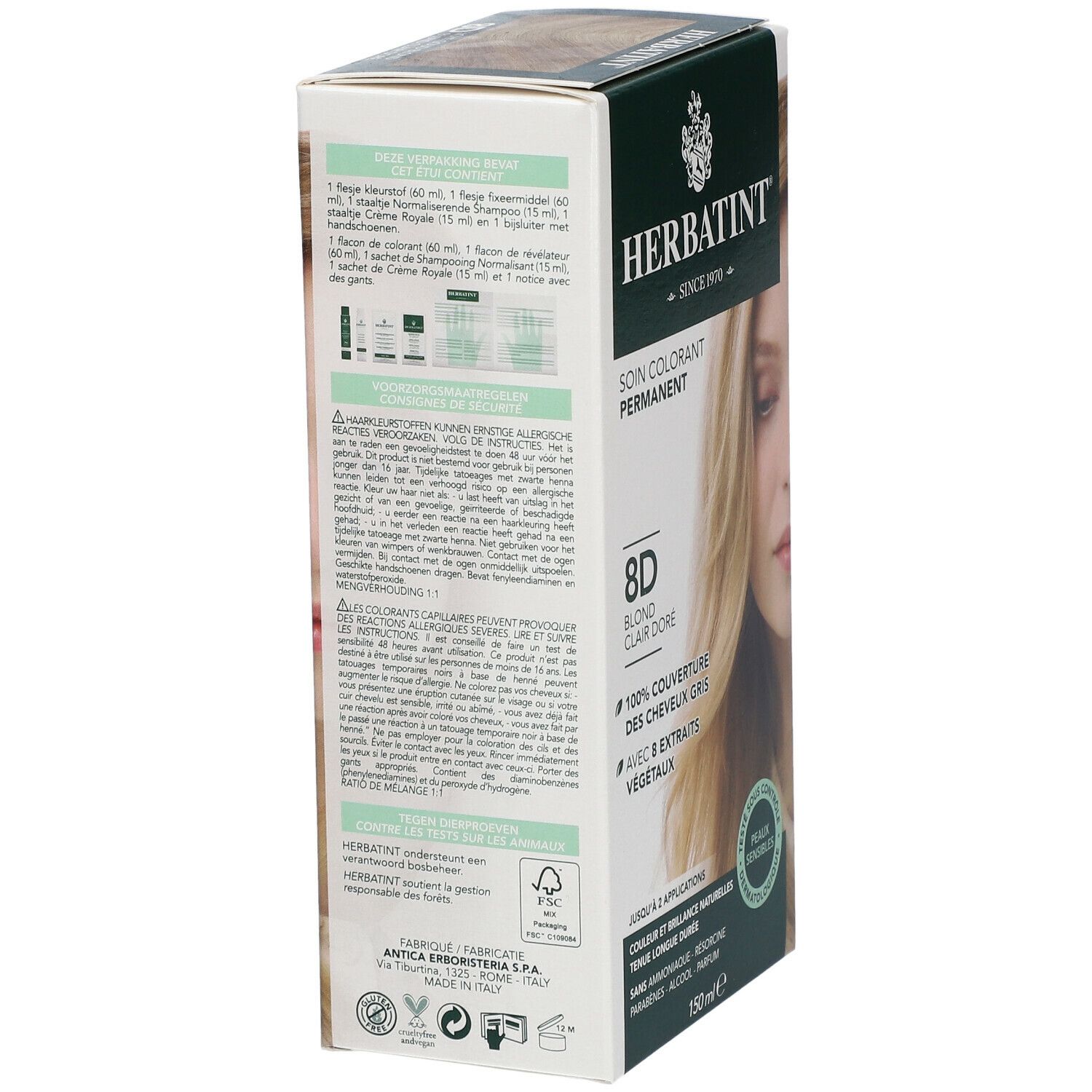 Herbatint Colorant Cheveux Permanente Blond Clair Doré 8D