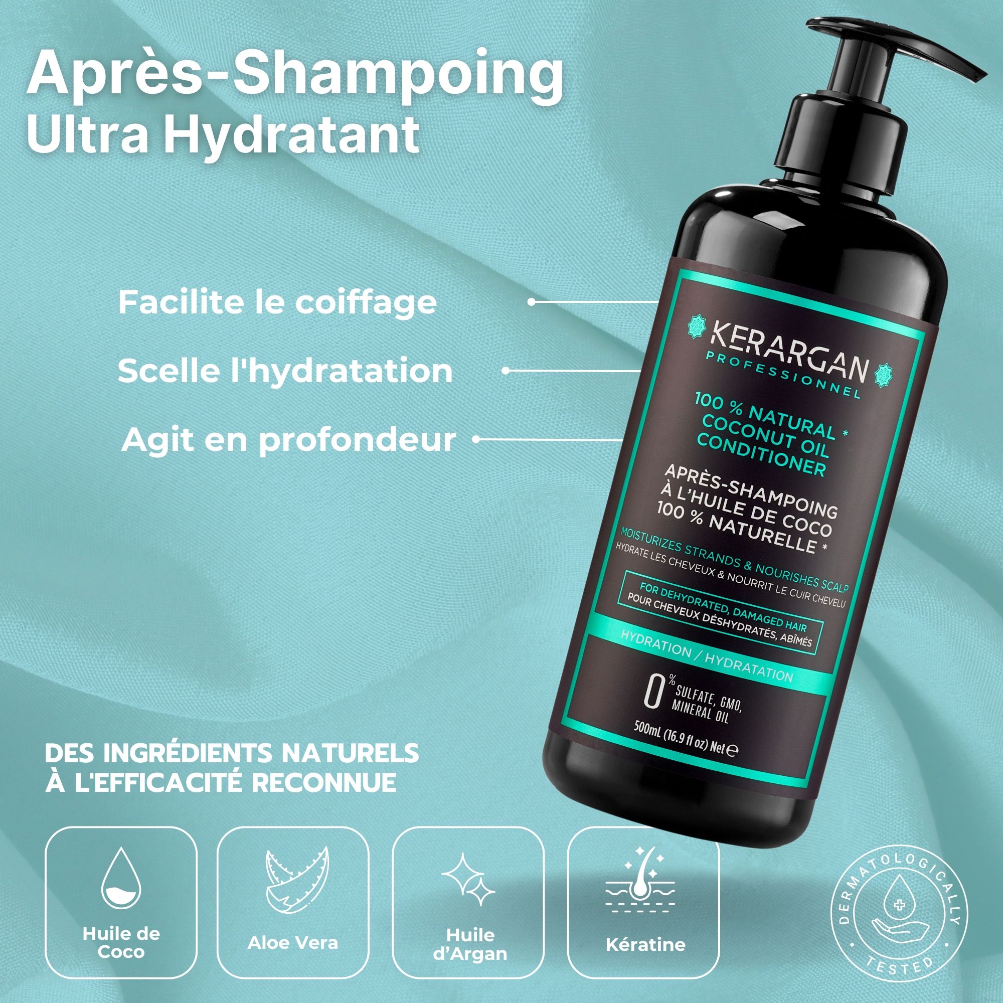 Kerargan - Duo Hydratant Shampoing & Après-Shampoing à l'Huile de Coco
