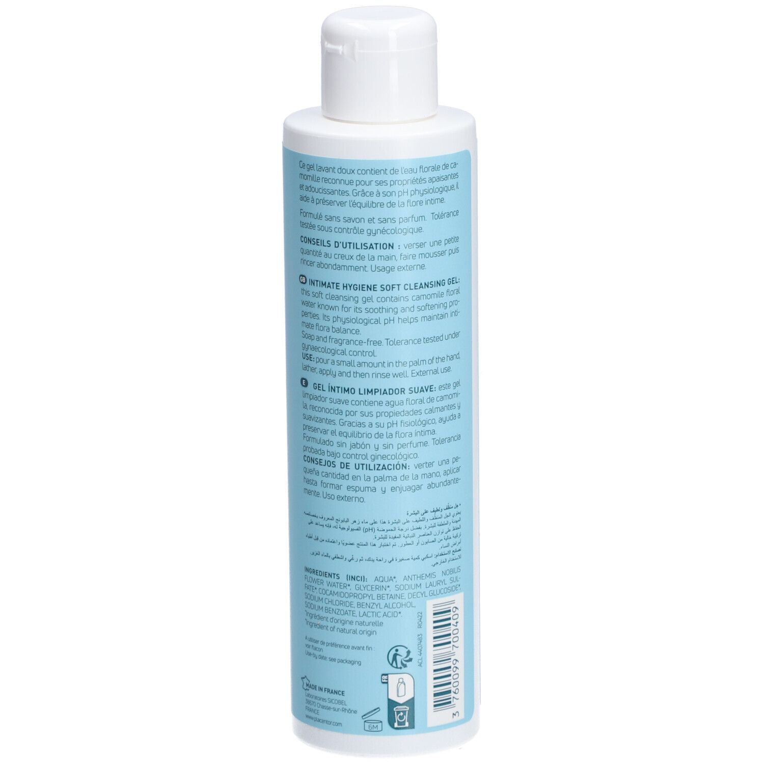 Gel moussant doux pour la toilette intime, enrichi en eau de fleur de camomille. Respecte le pH physiologique et contribue à l'équilibre de la flore intime. Sans savon ni parfum.TOLERANCE Testé sous contrôle gynécologique.