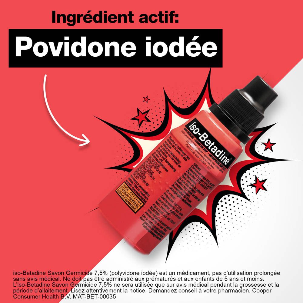 iso-Betadine Savon Germicide est un savon antiseptique pour le traitement de la peau et des plaies.