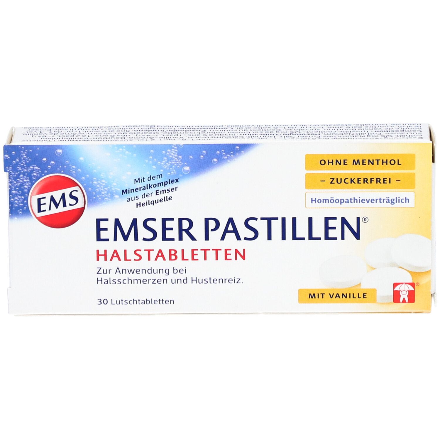 Pastilles à sucer au sel naturel d'Ems et à l'arôme de vanille pour soulager les irritations de la gorge et du pharynx