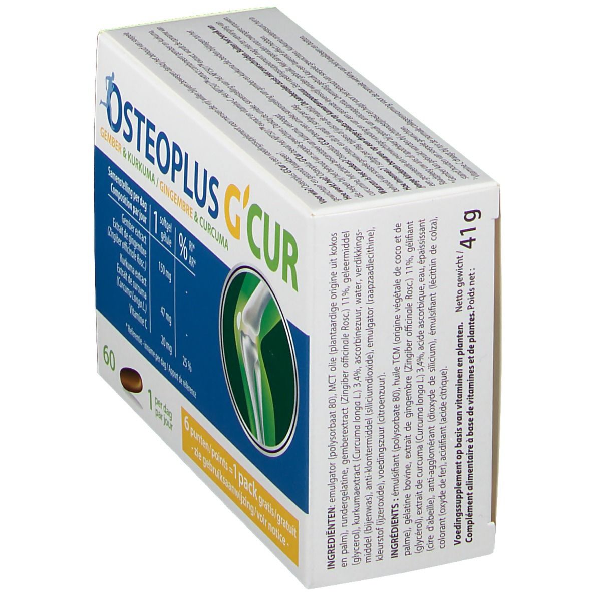Osteoplus G'Cur bevat het NPT501TM extract en vitamine C. Het NPT501TM extract combineert gember en kurkuma. Kurkuma draagt bij tot de instandhouding van normale gewrichten*. Dankzij de unieke samenstelling van het NPT501TM extract, wordt de opname van curcumine, het actieve bestanddeel van kurkuma, ondersteund.