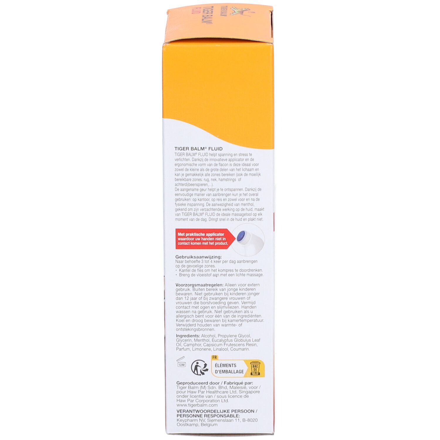 Tiger Balm® Fluid helpt spanning en stress te verlichten. Dankzij de innovatieve applicator en de ergonomische vorm van de flacon is deze ideaal voor zowel de kleine als de grote delen van het lichaam en kan je gemakkelijk alle zones bereiken (ook de moeilijk bereikbare zones: rug, nek, hamstrings of achterdijbeenspieren,...). De aangename geur helpt je te ontspannen.