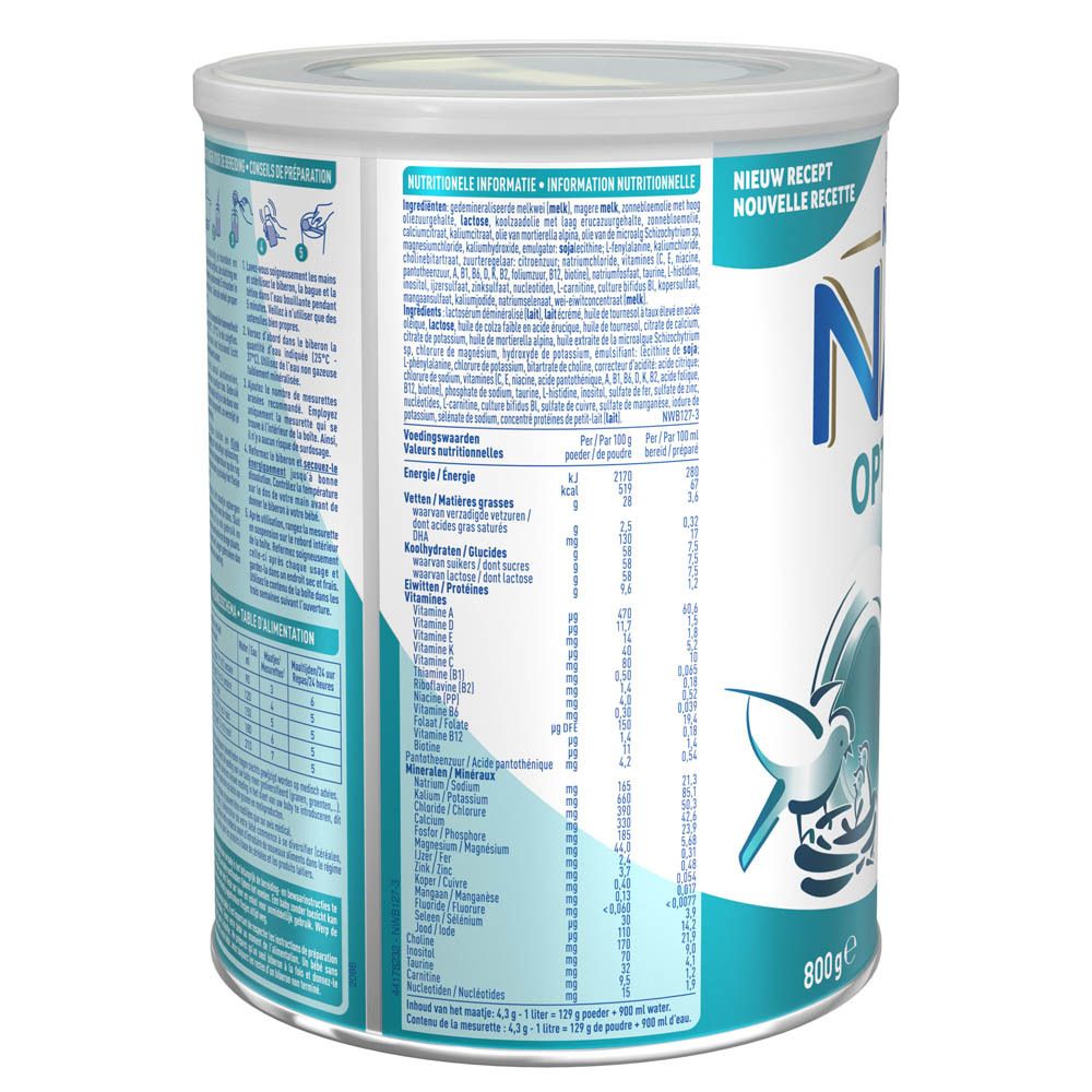 Onze dochter schakelde zonder problemen over van NAN evolia naar deze versie OPTI pro. De doos is handig in gebruik en ook telkens beschikbaar op de site. Ook deze versie laat geen vettig laagje achter op het flesje en is dus volgens mijn ervaring lichter dan sommige andere voedingen.