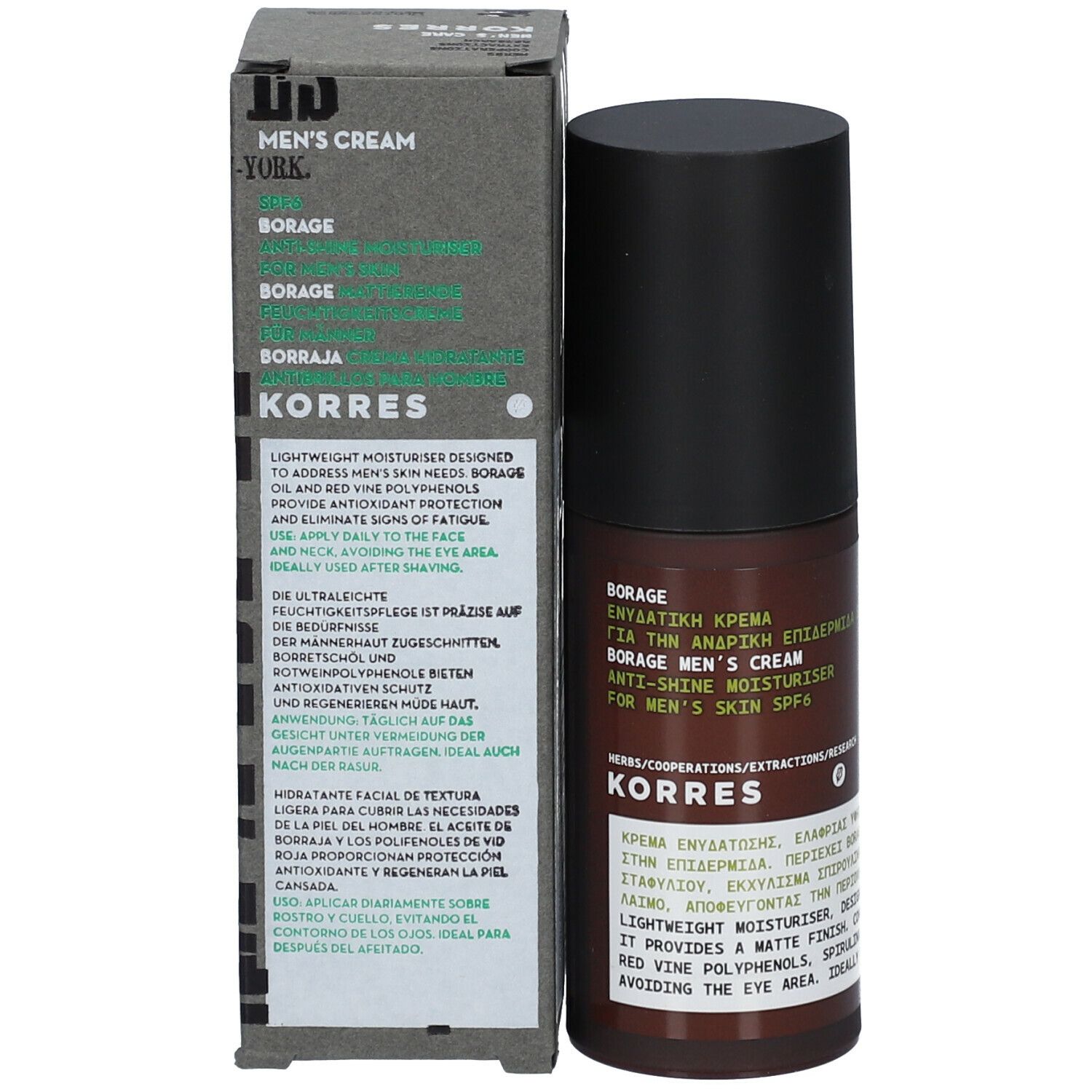 De Korres Borage SPF6 Men's Cream is een vochtregulerende anti-glimcrème voor de mannenhuid met UV-factor 6. Met haar lichte textuur is deze verzorging ideaal voor de mannenhuid die nood heeft aan hydratatie maar niet een plakkerige of glanzende finish.