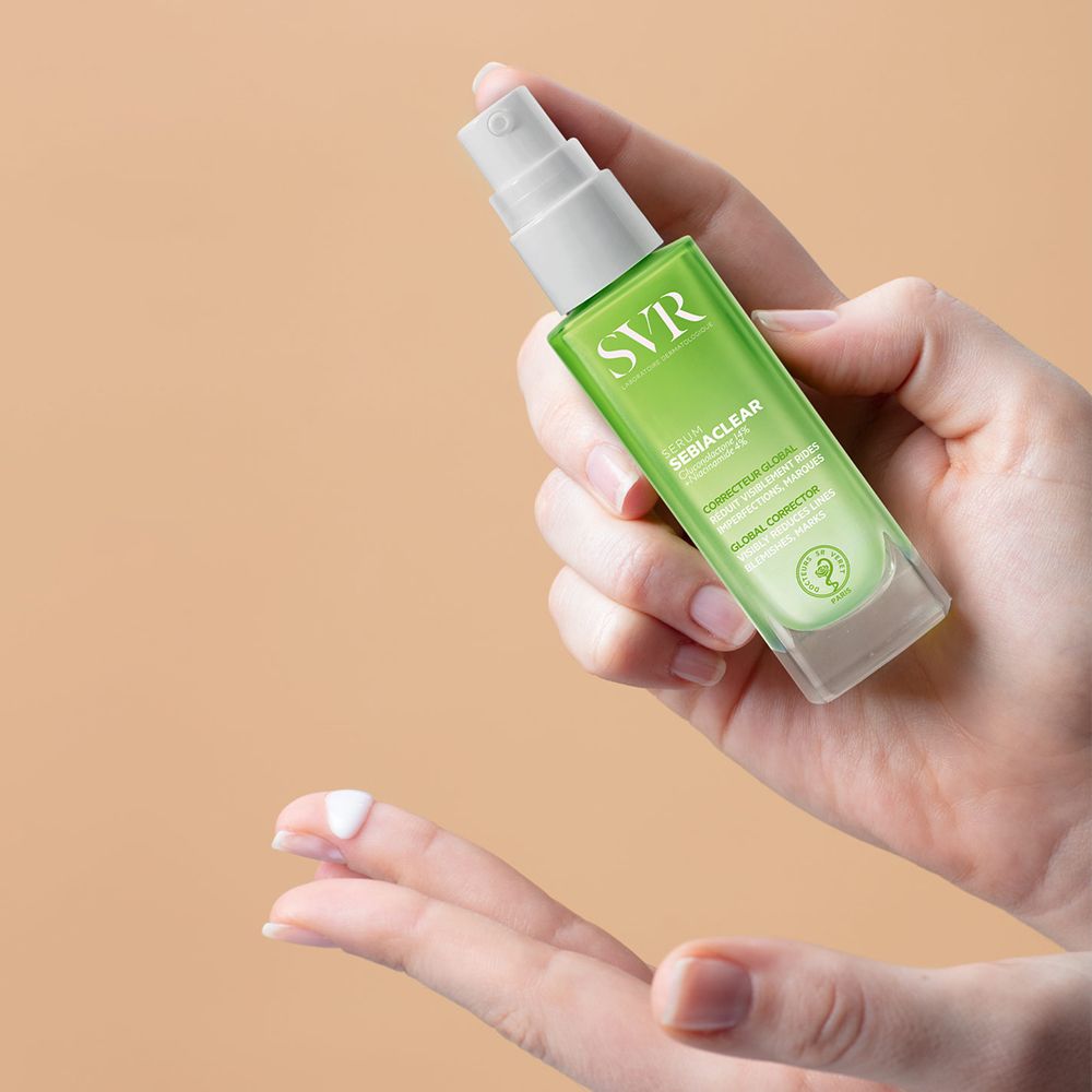 Sebiaclear Serum, de multifunctionele verzorging voor de behandeling van symptomen van acne bij volwassenen. De formule bevat een sterke concentratie referentiestoffen voor een drievoudige werking: anti-oneffenheden, anti-littekens en anti-rimpel. Afname van de oneffenheden en littekens na 7 dagen. De huid is gladgestreken, opgevuld en beschermd tegen schadelijke effecten van buitenaf. De hydraterende, frisse en smeltende textuur zorgt direct voor een matte finish.