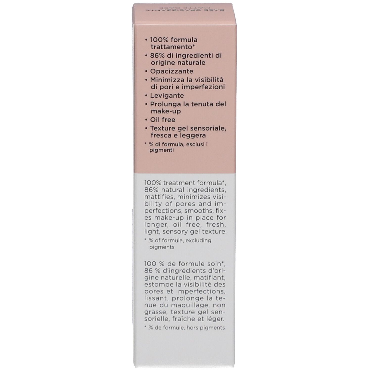 Met 86% ingrediënten van natuurlijke oorsprong en een voor 100% verzorgende formule* hult NOT – MATTIFYING BASE de huid in een lichte en onzichtbare laag die in een enkele stap poriën en oneffenheden vermindert en de huid er mat en glad laat uitzien. Bovendien is de formule verrijkt met twee actieve bestanddelen: het extract van Italiaanse en duurzame framboos dat hydrateert, kalmeert en huidveroudering voorkomt, en citroenwater dat de huid zuivert en strak maakt.