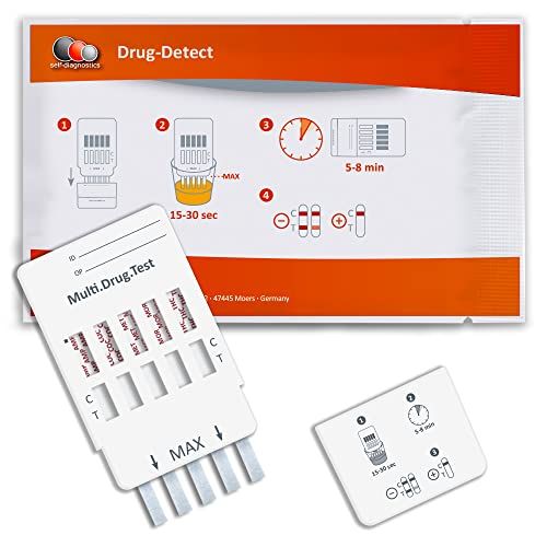 - SNELLE RESULTATEN - Test de urine met de drugs sneltest binnen 5 minuten op de aanwezigheid van de volgende 5 drugs: amfetamine, cocaïne, methamfetamine, morfine/opioïden en cannabis (THC). Dit bespaart u een doktersbezoek.